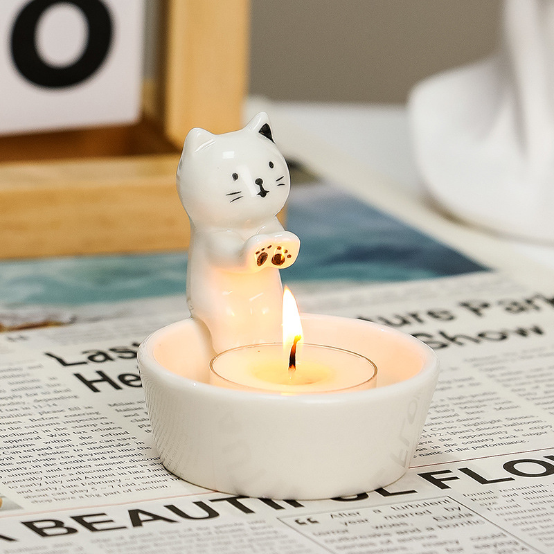 爆款 创意香薰蜡烛杯可爱猫咪蜡烛台节日情侣气氛灯摆件烛台