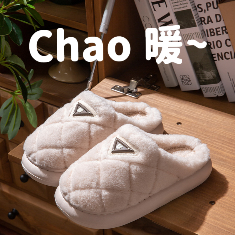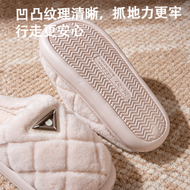 秋冬季 2025新款 厚底防滑保暖情侣室内家居加绒毛毛棉拖 女款 棉拖鞋