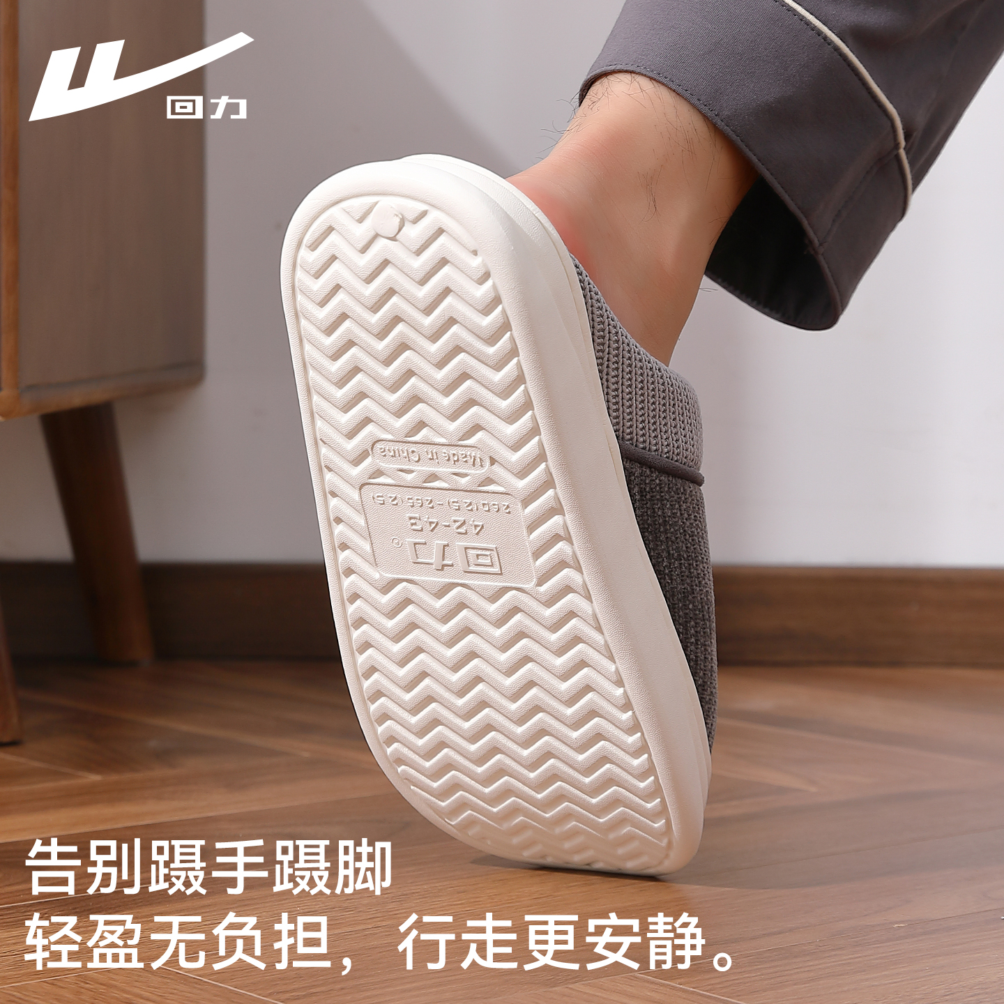 男士 回力棉拖鞋 室内家居加绒毛保暖厚底防滑中老年拖鞋 秋冬季 男款