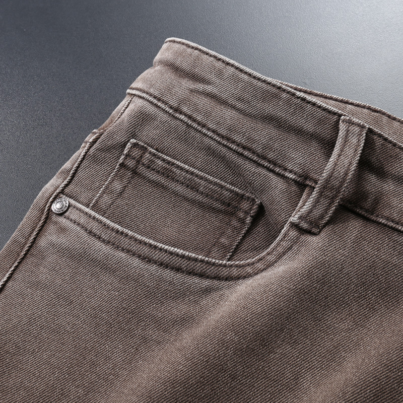 直筒牛仔裤 2025秋冬咖啡色高端水洗纯棉弹力休闲百搭男士 中腰修身