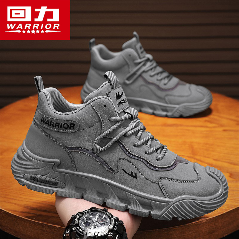 运动鞋 高帮休闲鞋 秋冬新款 子学生厚底男鞋 皮面鞋 征服鸿星尔克板鞋