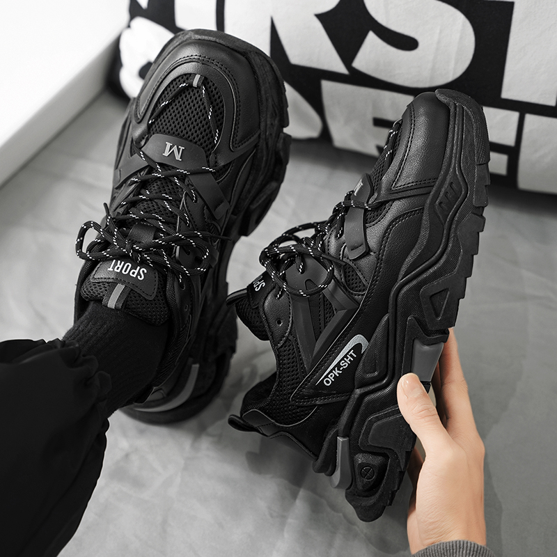 青少年跑步防滑厚底增高黑色老爹潮鞋 潮流百搭休闲运动鞋 秋季 男鞋