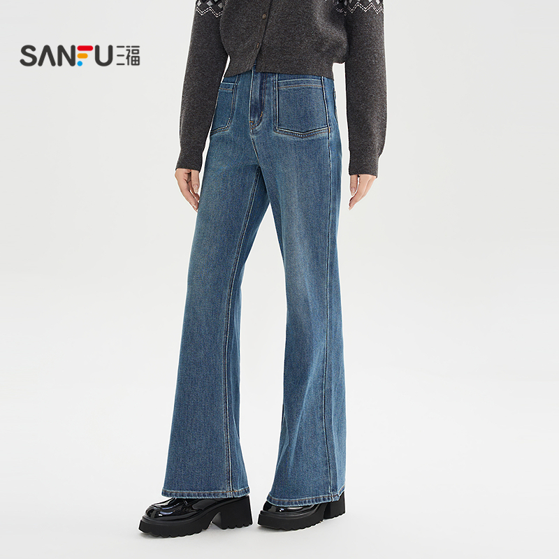 时尚 冬季 潮流喇叭裤 复古深色裤 511797 三福牛仔长裤 子女装 2025新款