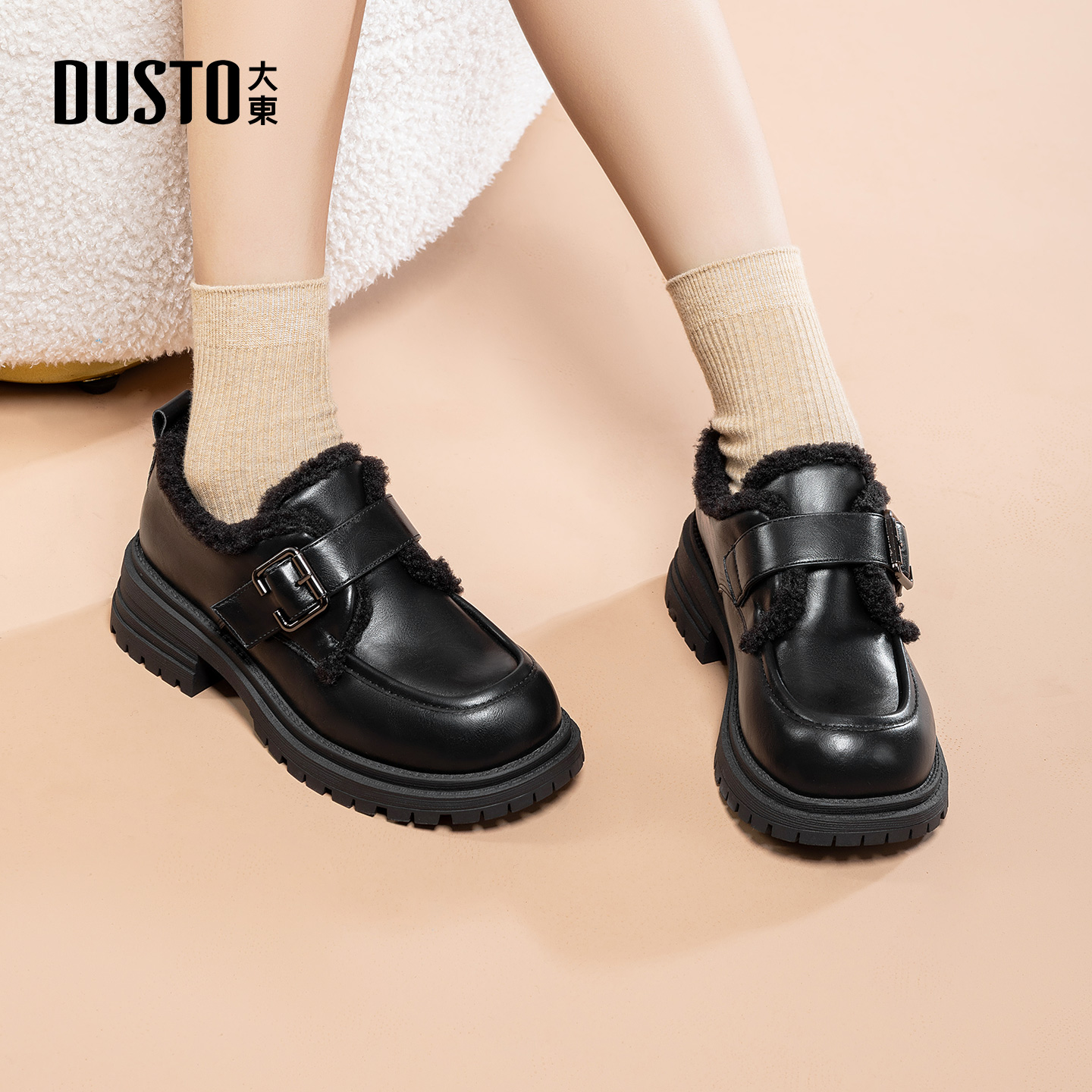 百丽复古时装 加绒显瘦厚底粗高跟短靴子E5S1DDD5预 超软羊皮靴新款