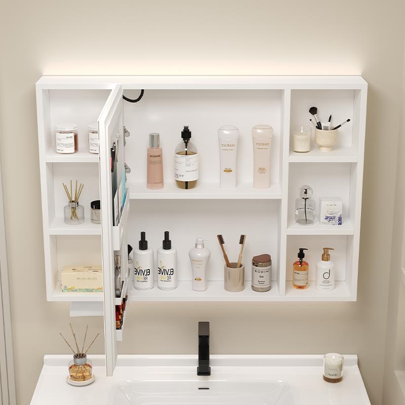 智能浴室镜柜单独加厚太空铝挂墙式 洗漱台带美妆收纳架镜子抽纸孔