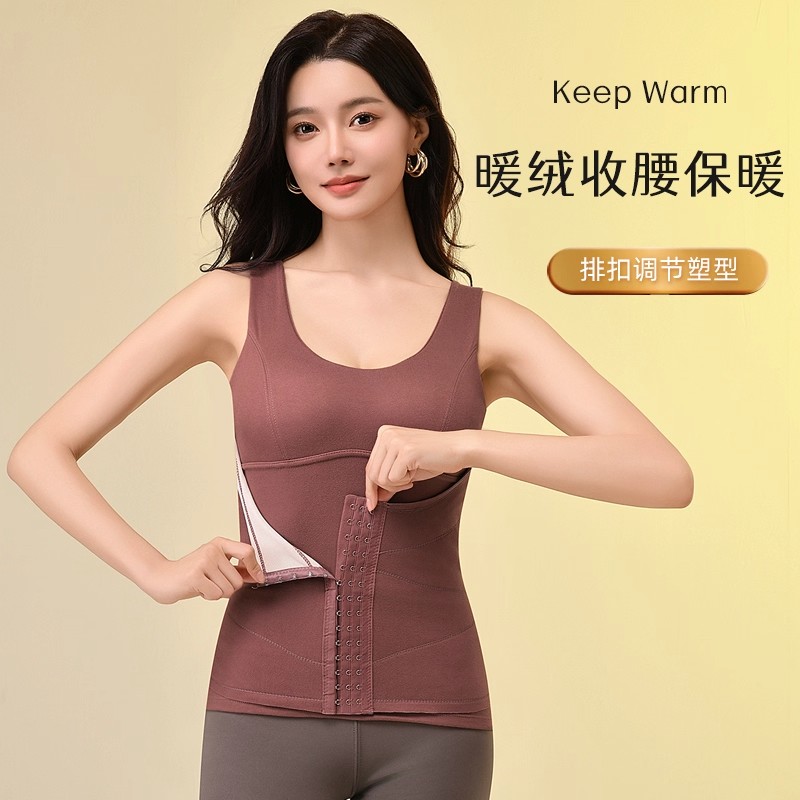 带胸垫聚拢保暖内搭背心 本草曲线一体式 香菇双十一