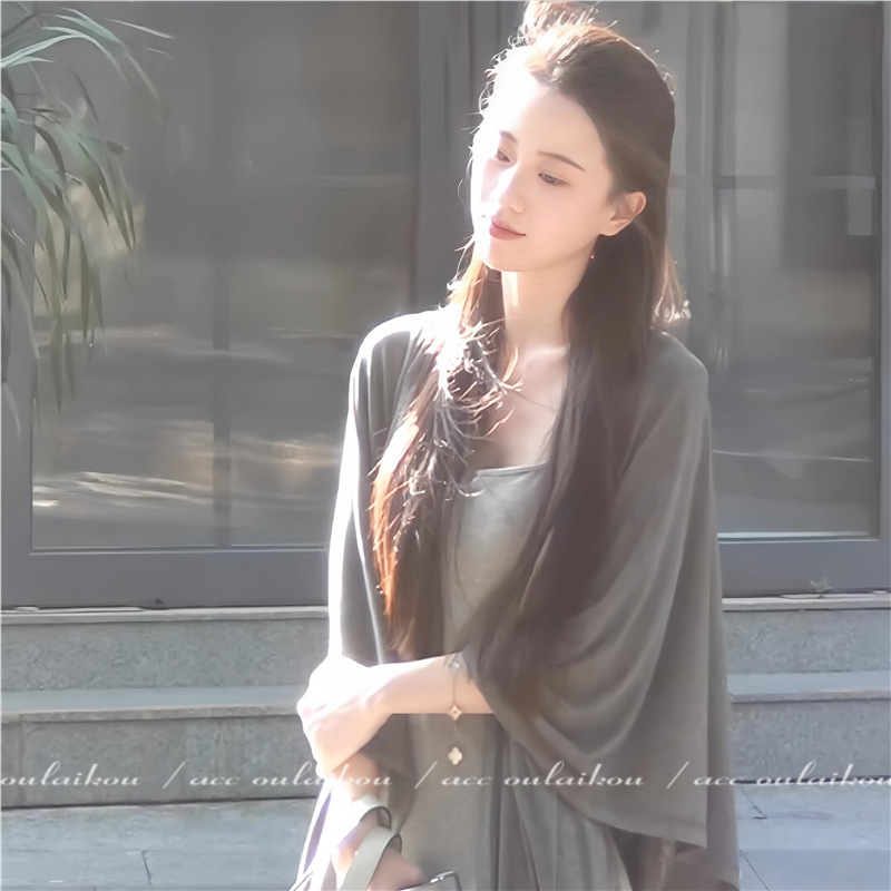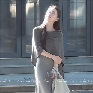 气质披肩外搭配裙子氛围感围巾外搭 复古灰色罩衫 服饰腰带 新中式