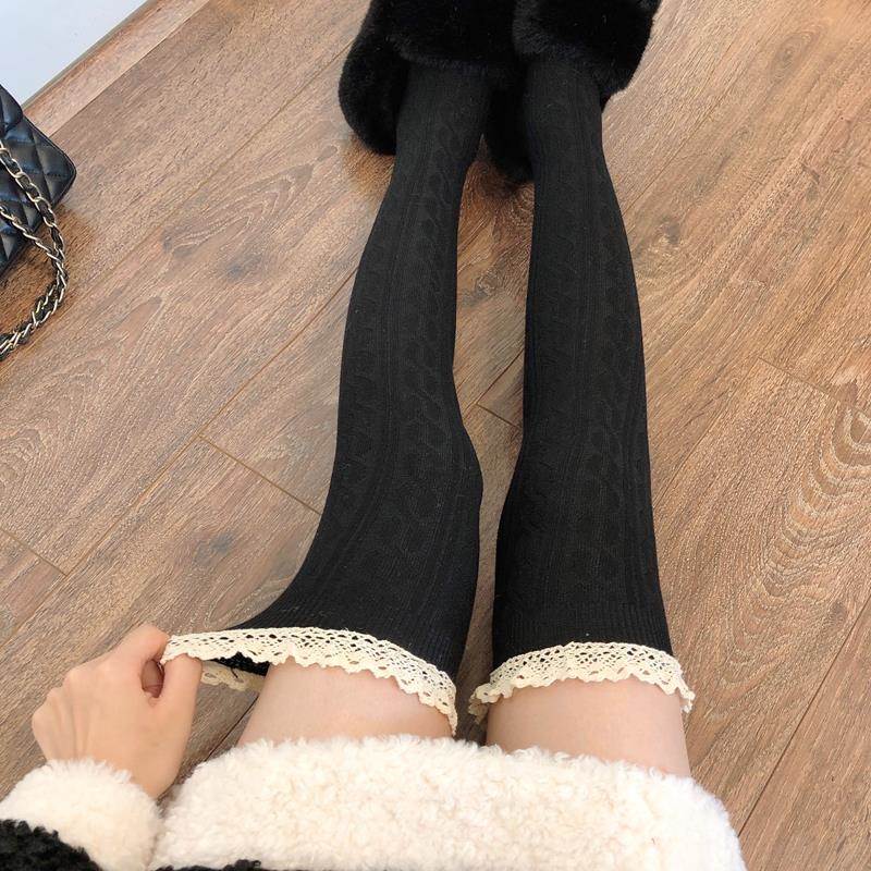 长筒靴袜子女搭配靴子小腿堆堆过膝袜春秋内搭白色大腿长筒袜羊毛