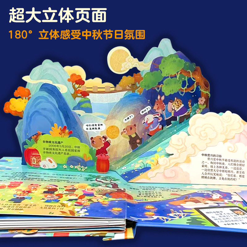 8岁幼儿中秋礼物亲子互动有关中秋节月亮 绘本故事书 儿童3D立体翻翻书3 2025圆耳熊找月亮中秋节篇传统节日立体书新版