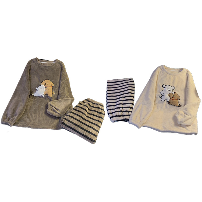 猫人法兰绒情侣睡衣2025秋冬新款 卡通甜美可外穿家居服睡衣套装