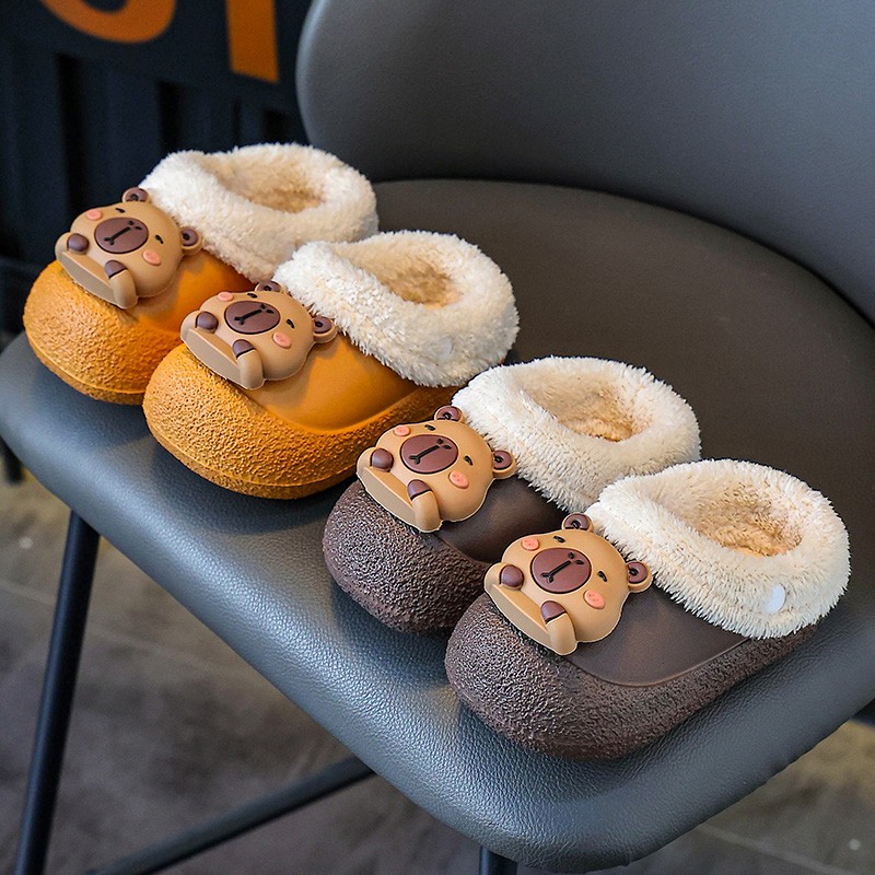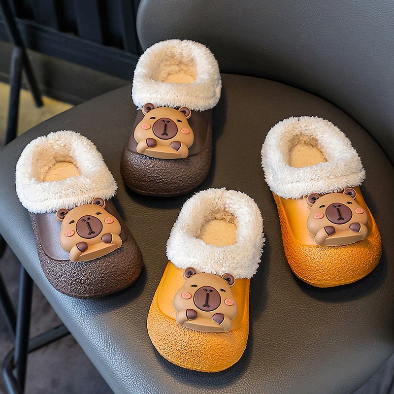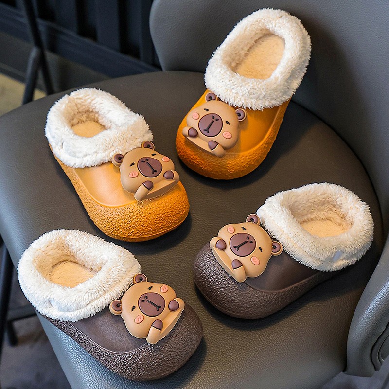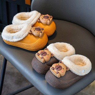 女童宝宝室内防滑保暖外穿防水棉鞋 卡皮巴拉儿童棉拖鞋 男童秋冬季