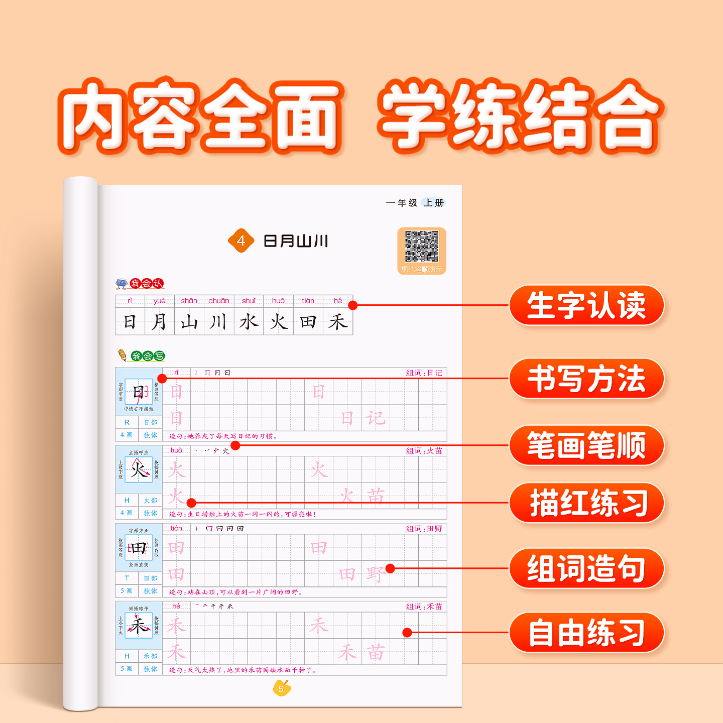 2025新版 语文生字描红笔画笔顺一二类字每日一练入学必备 小学语文同步练字帖上下册一年级小学生语文二年级三四五六年级配套人教版