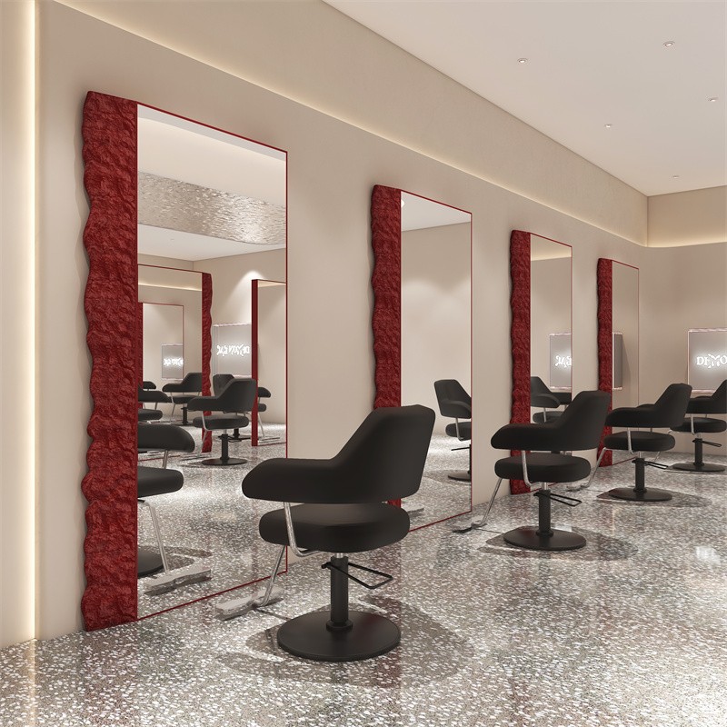 网红发廊专用新款 铝合金镜台理发店高级感镜子落地镜美发店专用镜