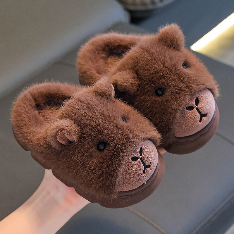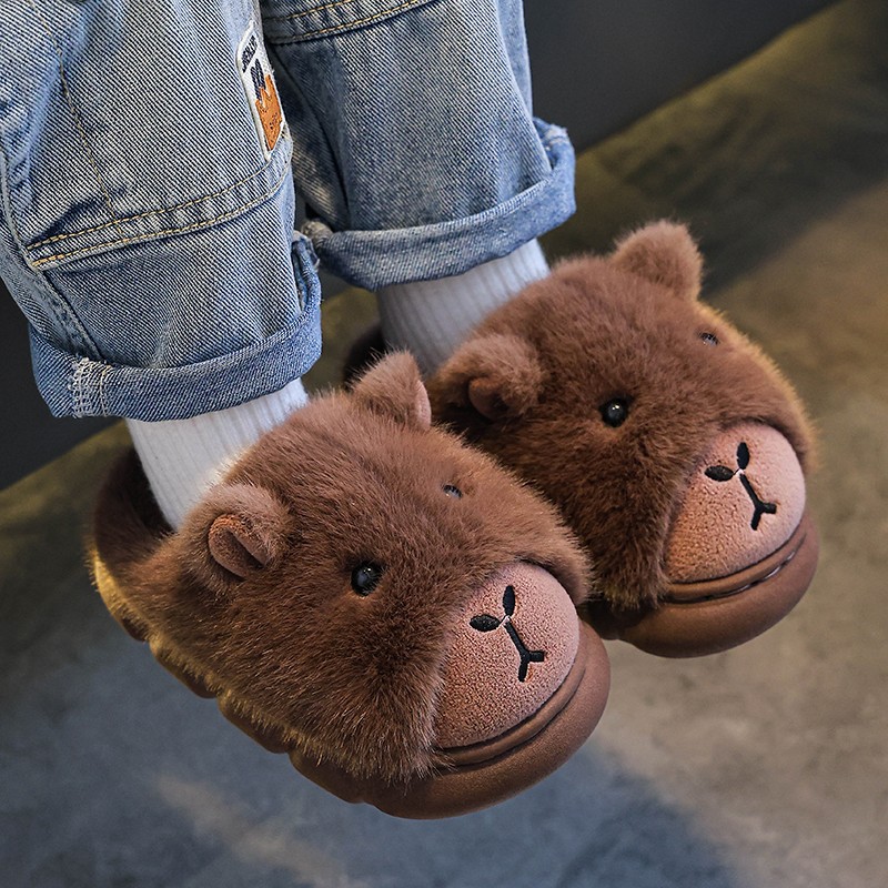 冬 防滑加绒保暖厚底宝宝拖鞋 卡皮巴拉儿童棉拖鞋 男童秋冬居家新款