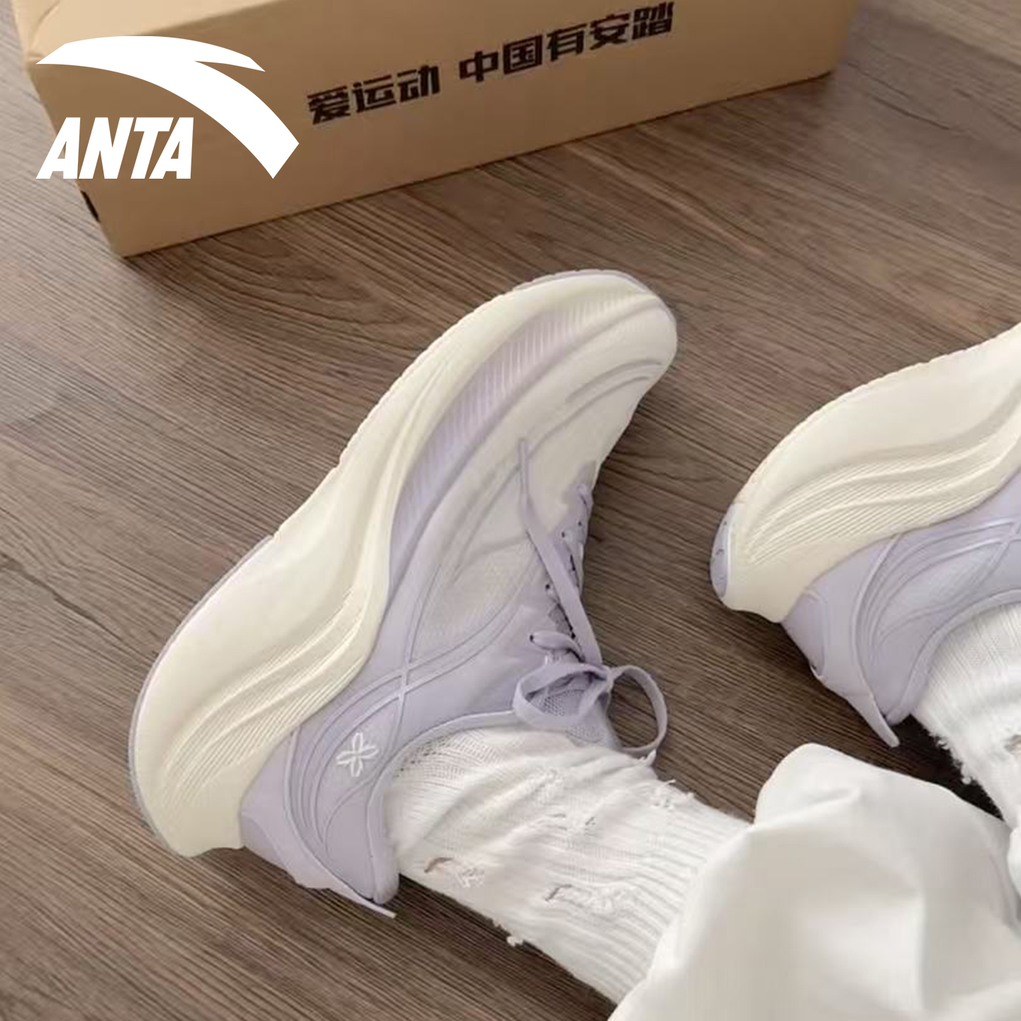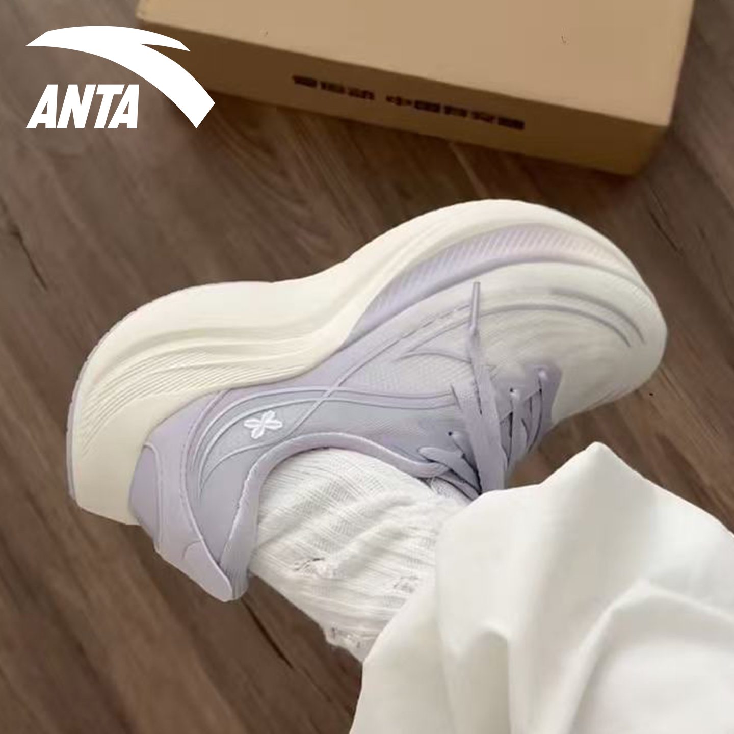 软底轻便减震休闲跑步鞋 安踏叶子6女鞋 新款 女2025秋季 紫色运动鞋