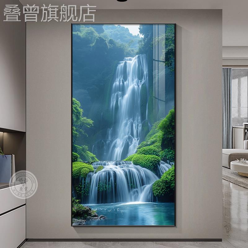 流水生财风景画入户玄关挂画正对门走廊过道装 饰画源远流长山水画