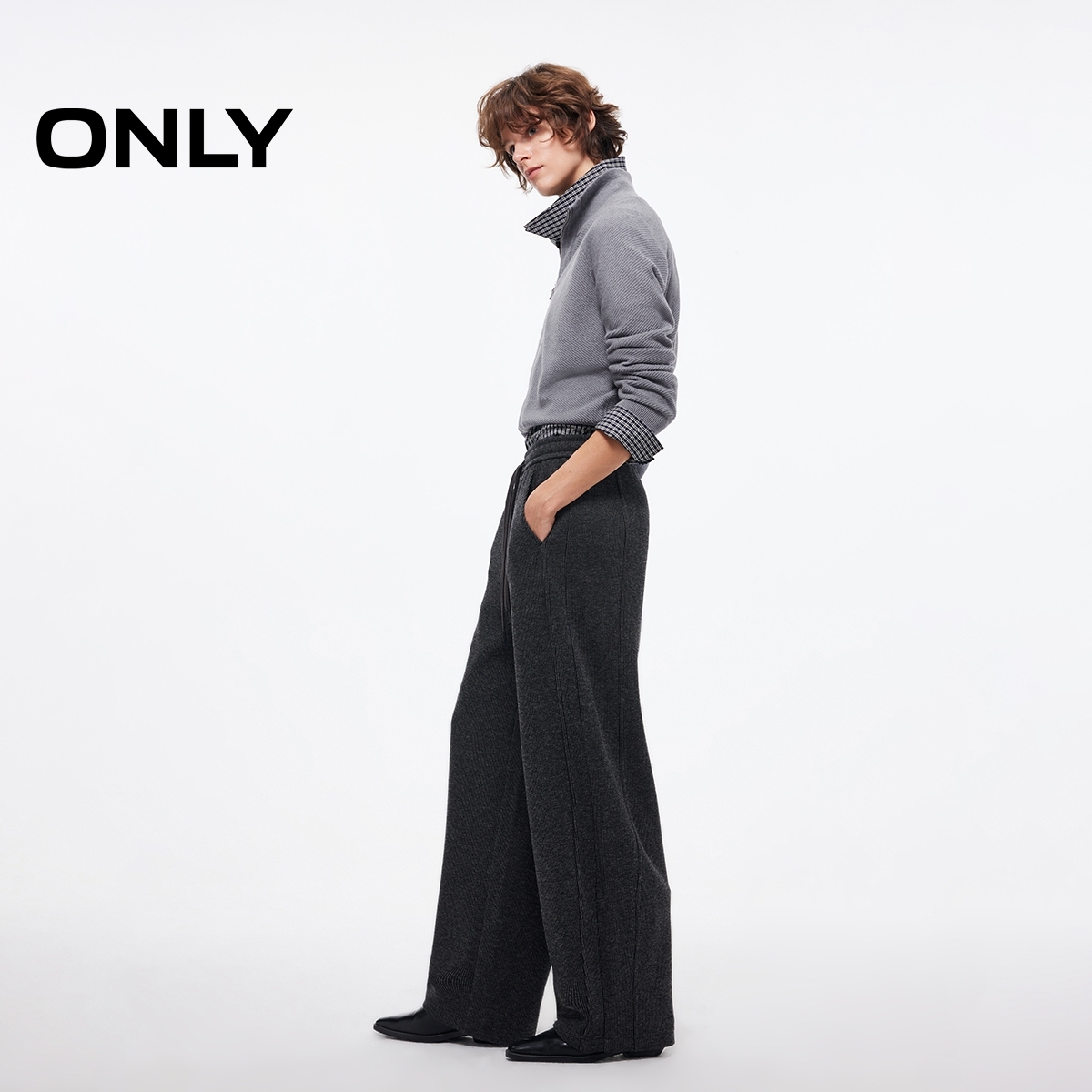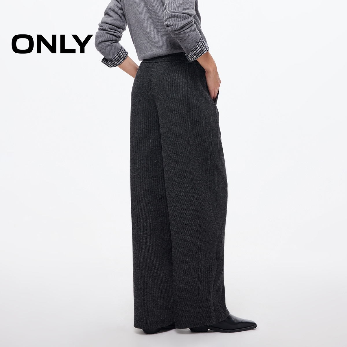 休闲裤 ONLY2025秋季 阔腿裤 亲肤柔软松紧抽绳腰头宽松长裤 女 新款