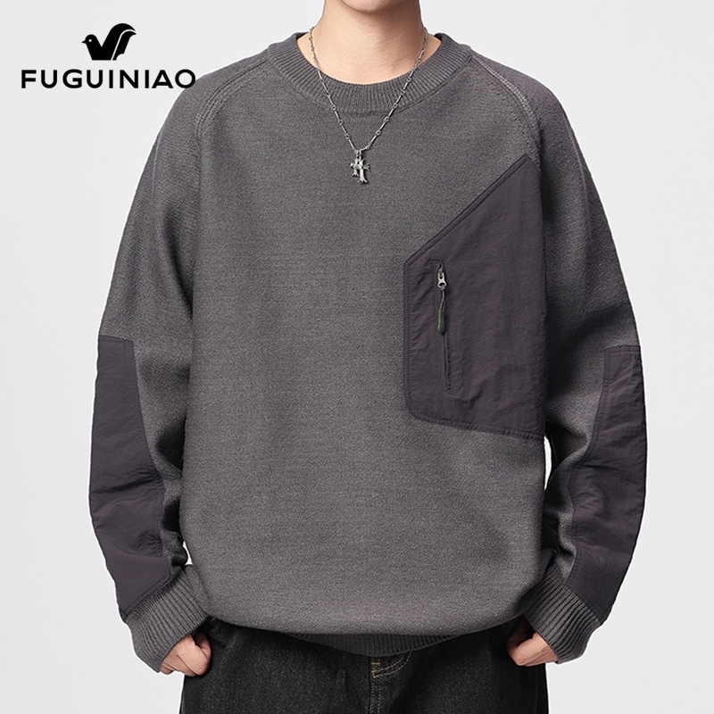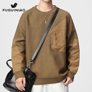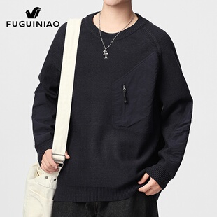 初中高中学生打底衫 慵懒风毛衣男秋冬季 青少年潮牌宽松加厚针织衫