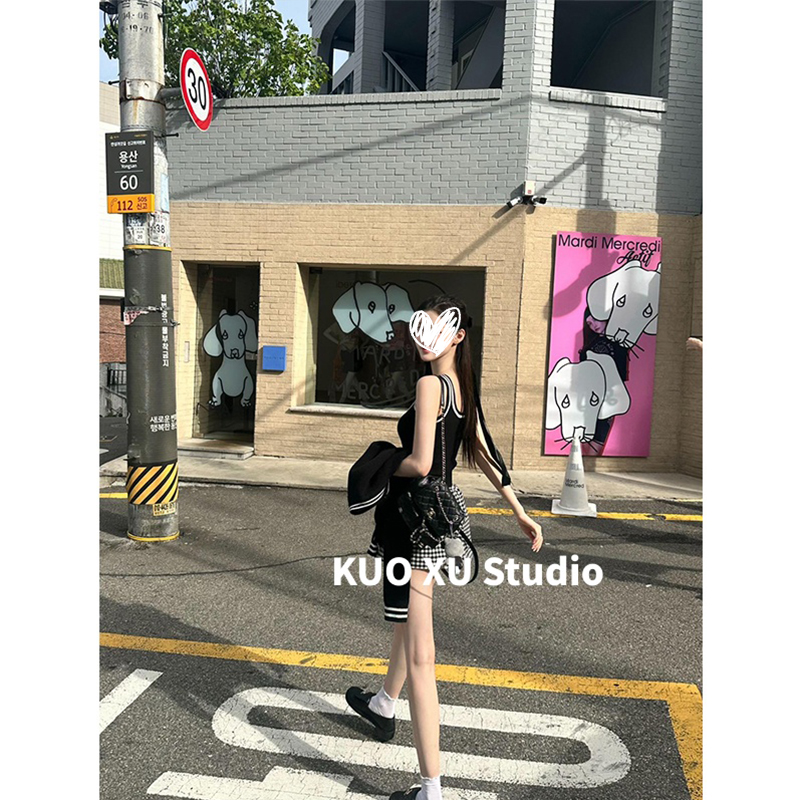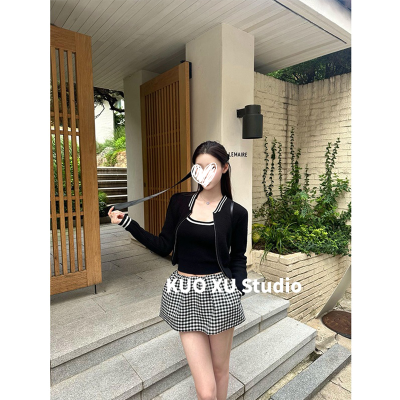 早秋韩系气质高级感开衫 女 上衣内搭吊带背心休闲显瘦格子短裙套装