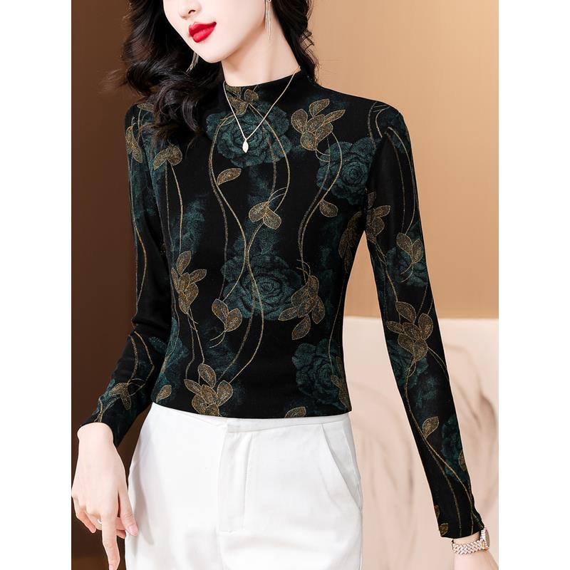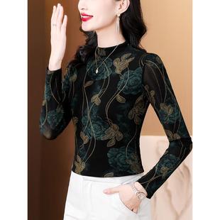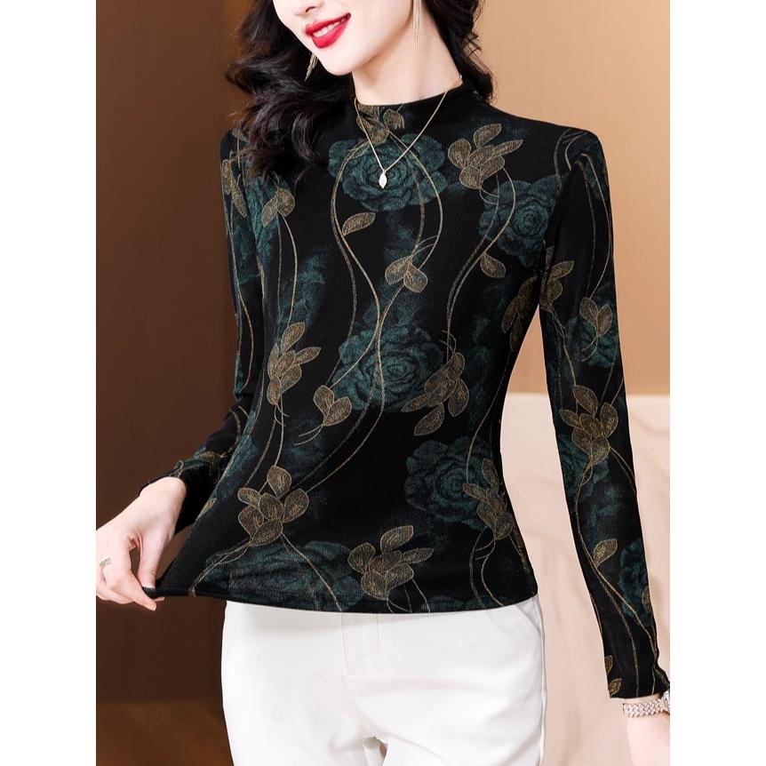 2025秋百搭小衫 女士长袖 中年妈妈气质0924u 半高领印花打底衫 时尚