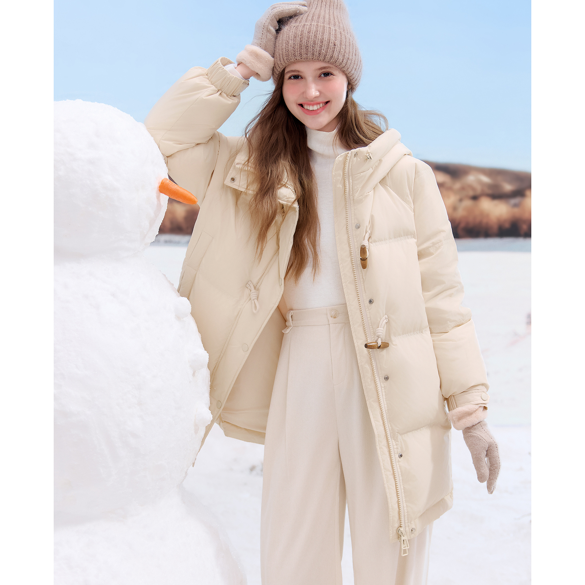 韩国大口袋连帽长款 宽松百搭加厚白鸭绒外套 羽绒服女冬2025年新款