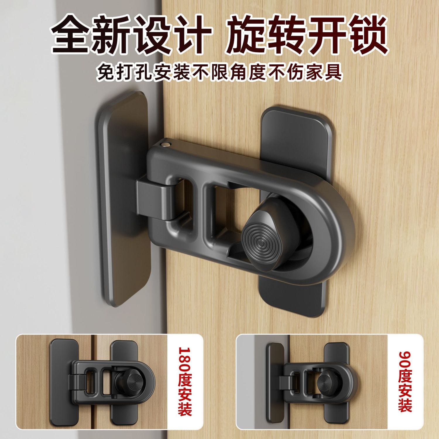 免打孔插销抽屉柜门90度滑门卡扣锁门扣临时门锁门栓免打孔安装