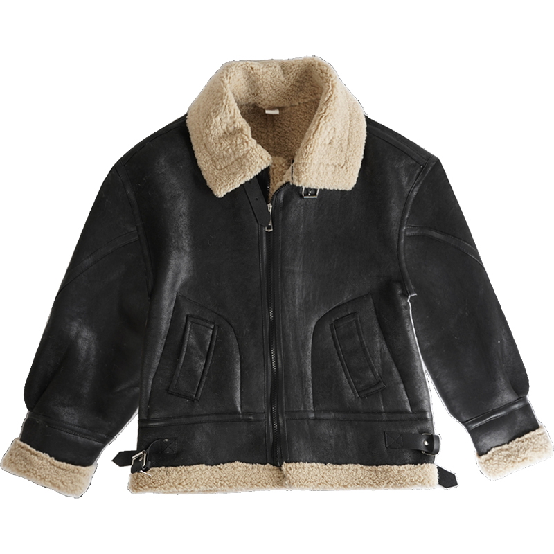 男童麂皮绒外套秋冬新款 儿童皮衣夹克男孩皮毛一体加绒加厚拉链衫