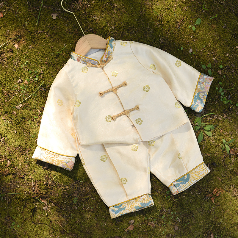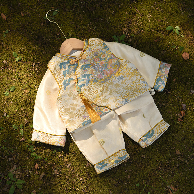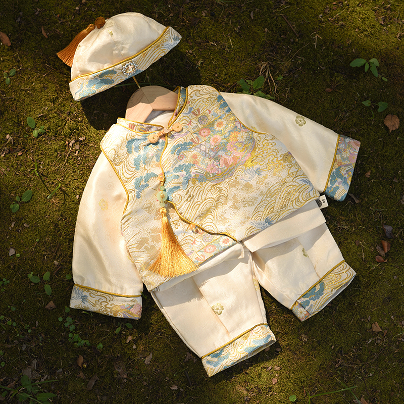 中国风唐装 新款 周岁男宝宝礼服秋季 婴幼儿童抓周衣服 花舟一梦