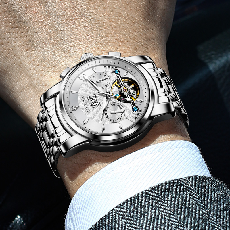 瑞士认证官方正品 全自动机械表多功能镂空高档奢华腕表 牌手表男士