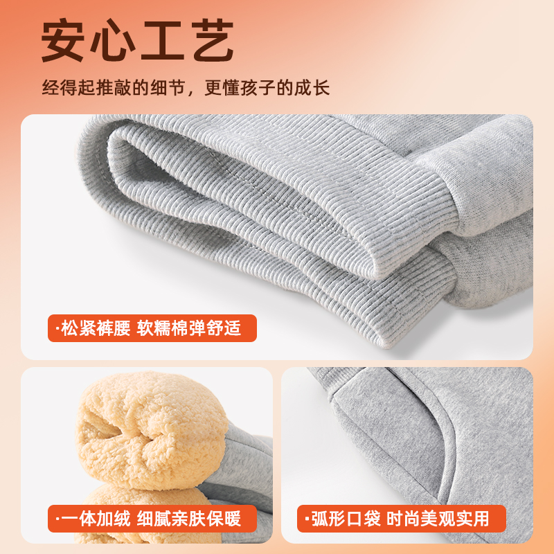 男童运动休闲裤 2025新款 子女童羊羔绒长裤 拉夏贝尔儿童秋冬加厚裤