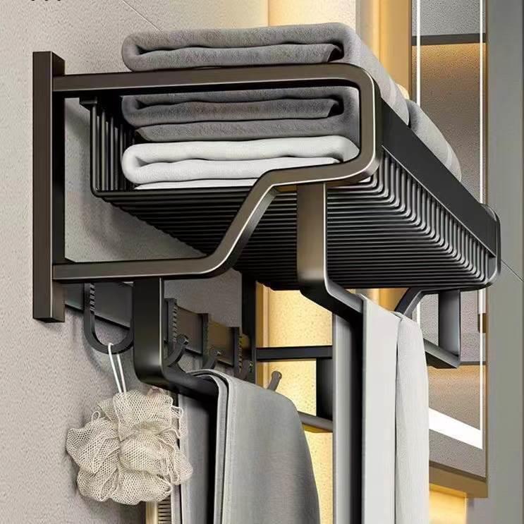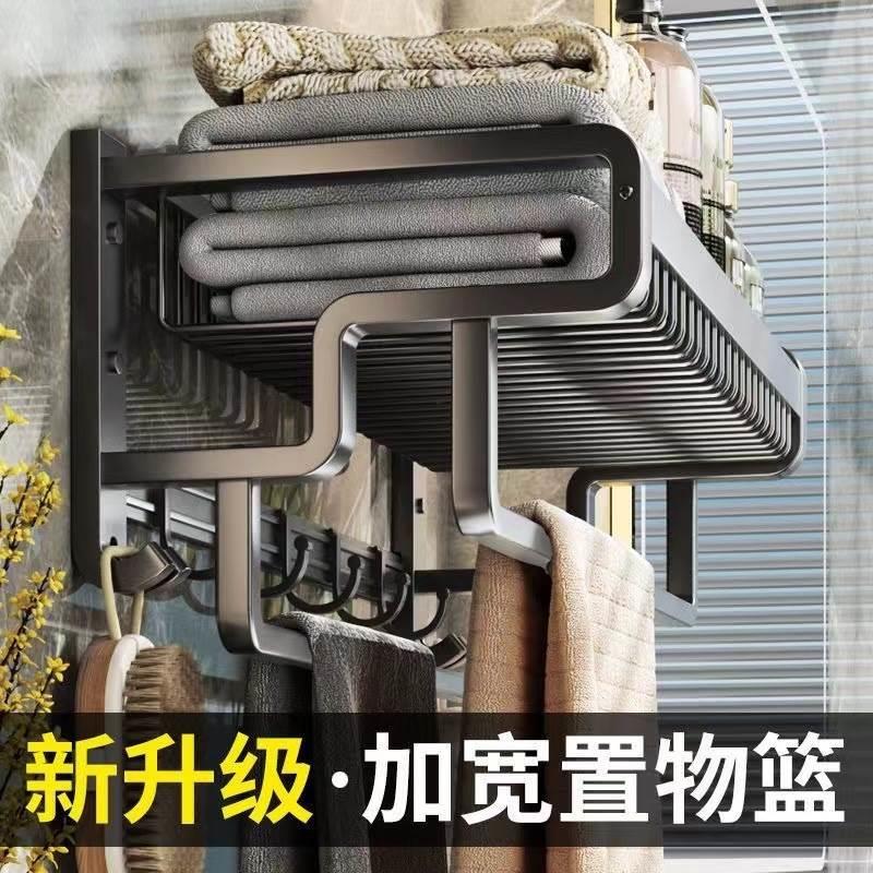 双杆卫生间毛巾架免打孔浴巾架浴室厕所置物架太空铝壁挂衣收纳