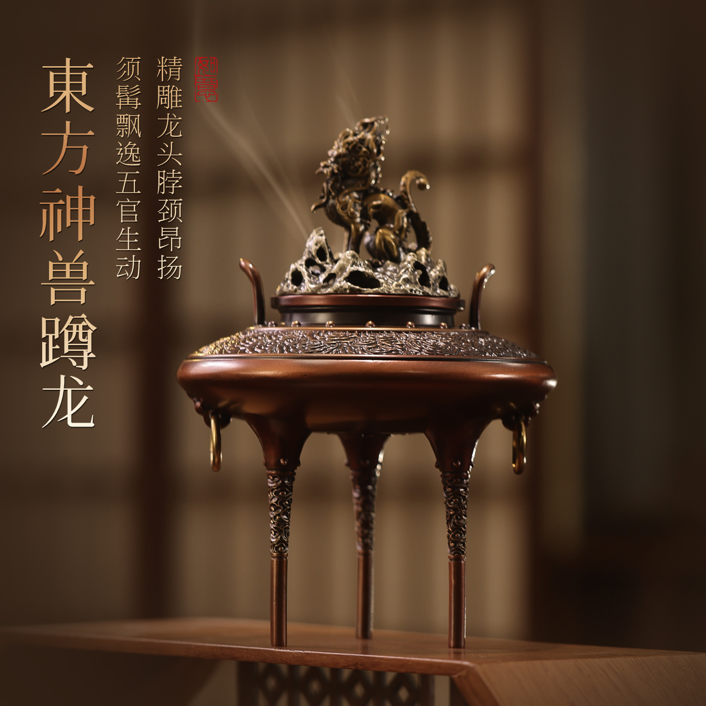 纯铜香炉家用室内熏香炉沉香檀香盘香炉中式 复古茶道香薰炉子摆件