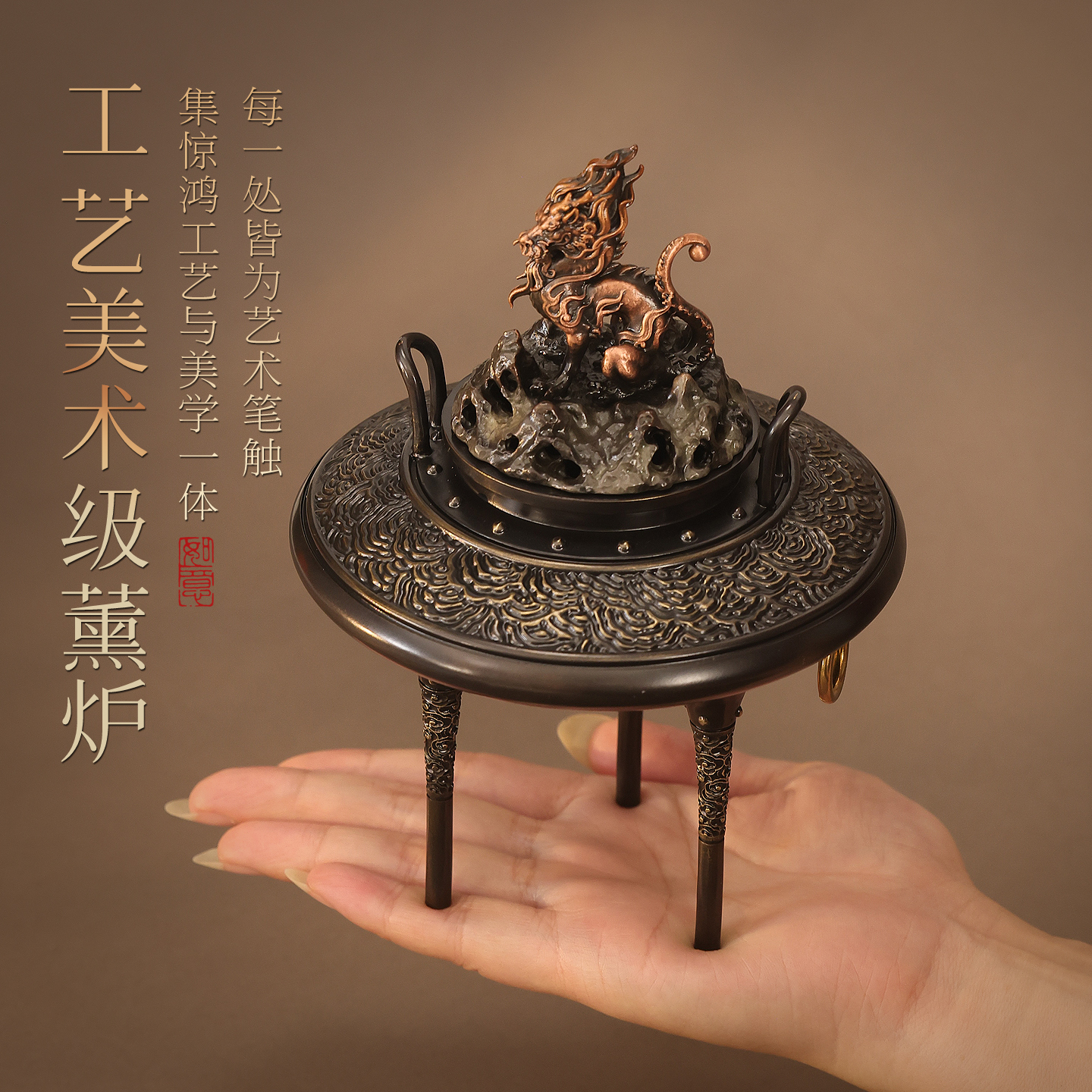 博山炉纯铜香炉高级感中国风家用室内盘香炉檀香熏香炉茶道香薰炉