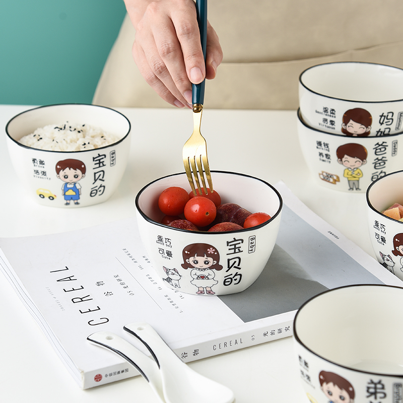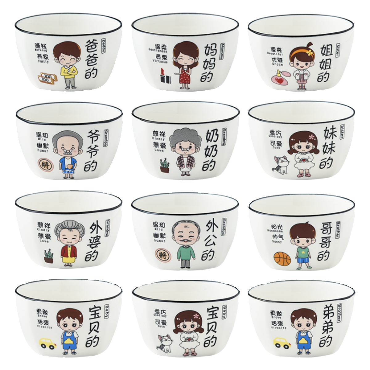 亲子碗家用创意个性 陶瓷吃饭碗 一家四口家庭专人专用区分碗碟套装