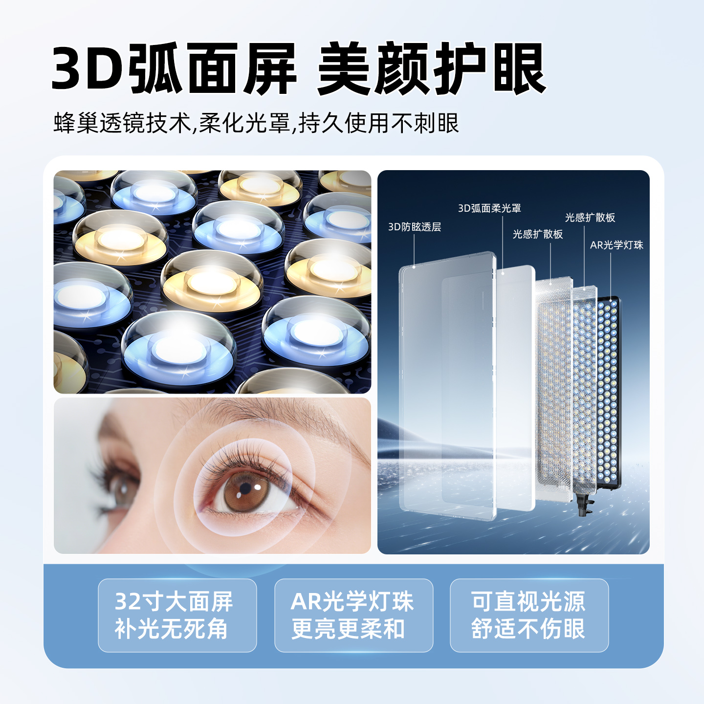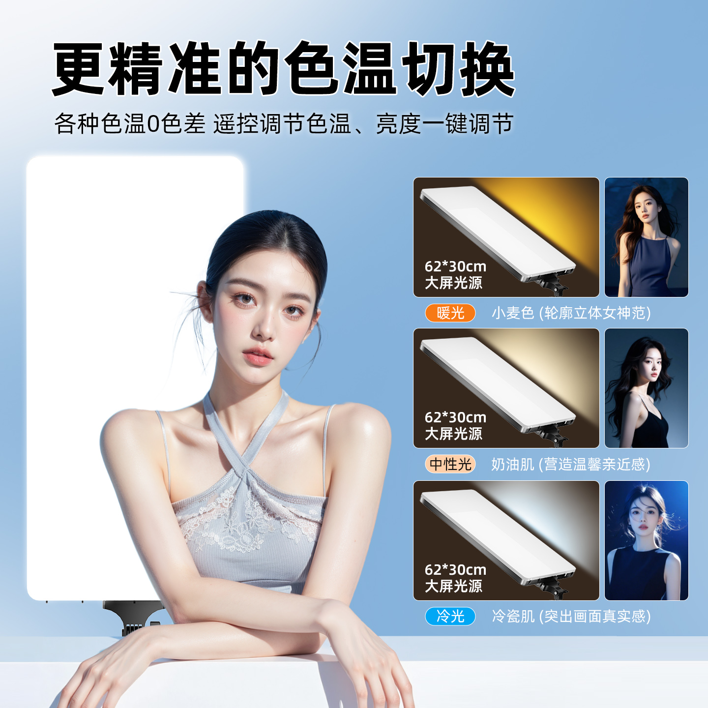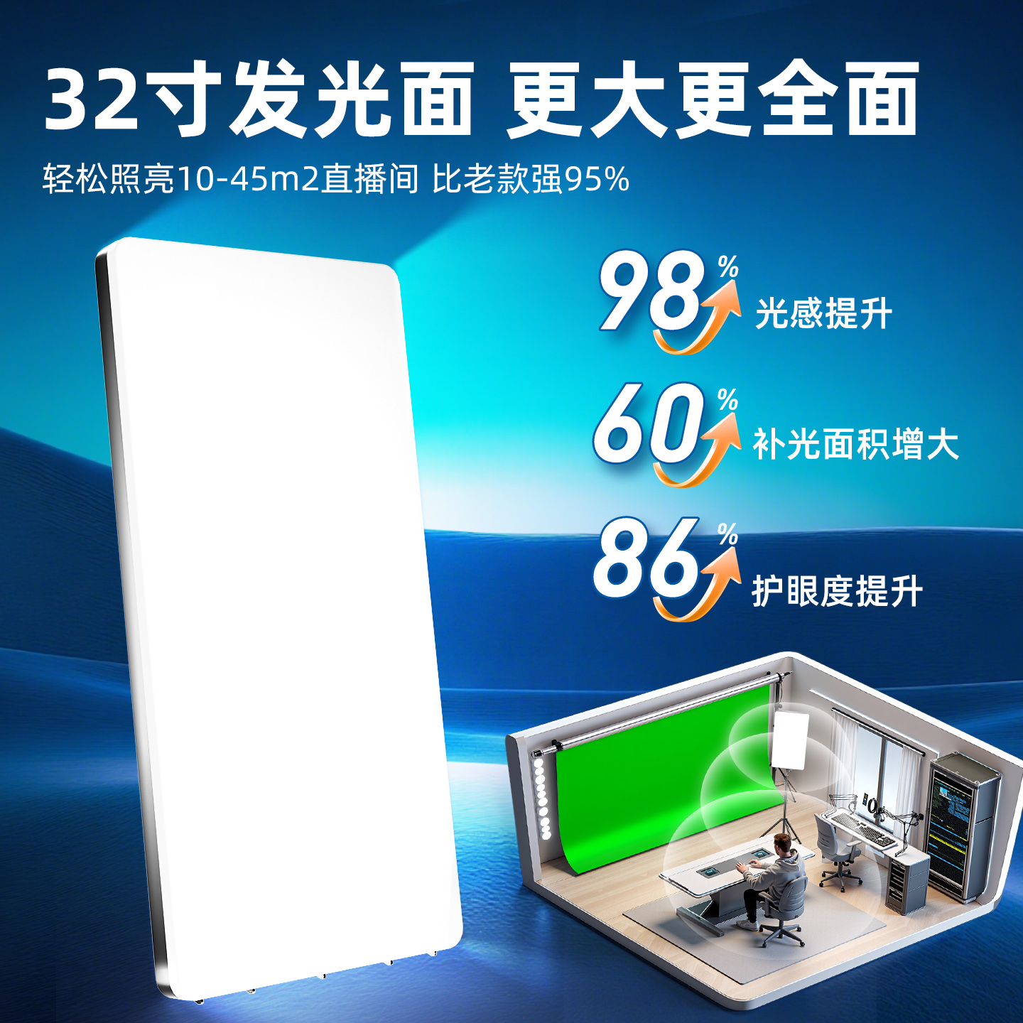 32寸直播补光灯主播美颜柔光拍照专用方形平板灯直播间全身打光专业美腿灯室内人像拍摄服装 带货摄影led灯光