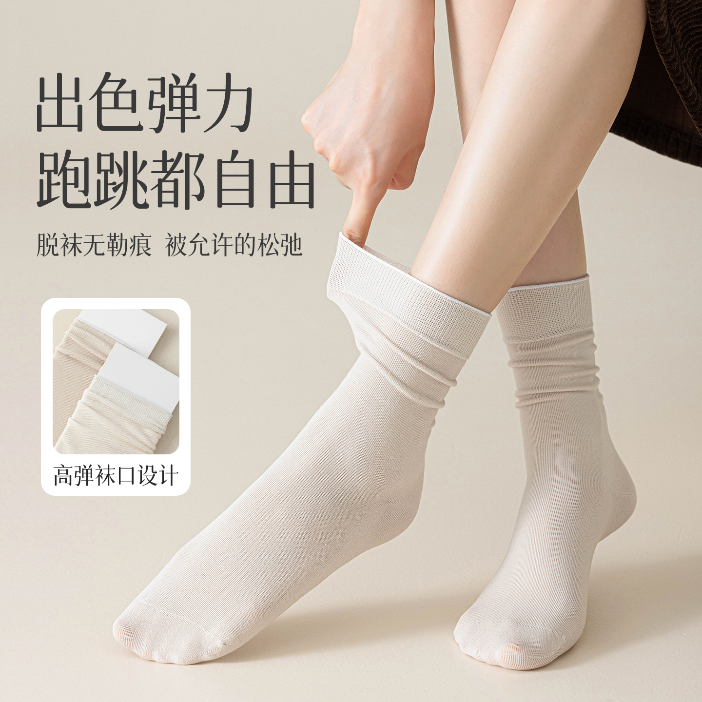 棉袜吸汗春秋款 防臭厚款 月子无骨长筒袜 纯棉中筒袜秋冬季 袜子女款