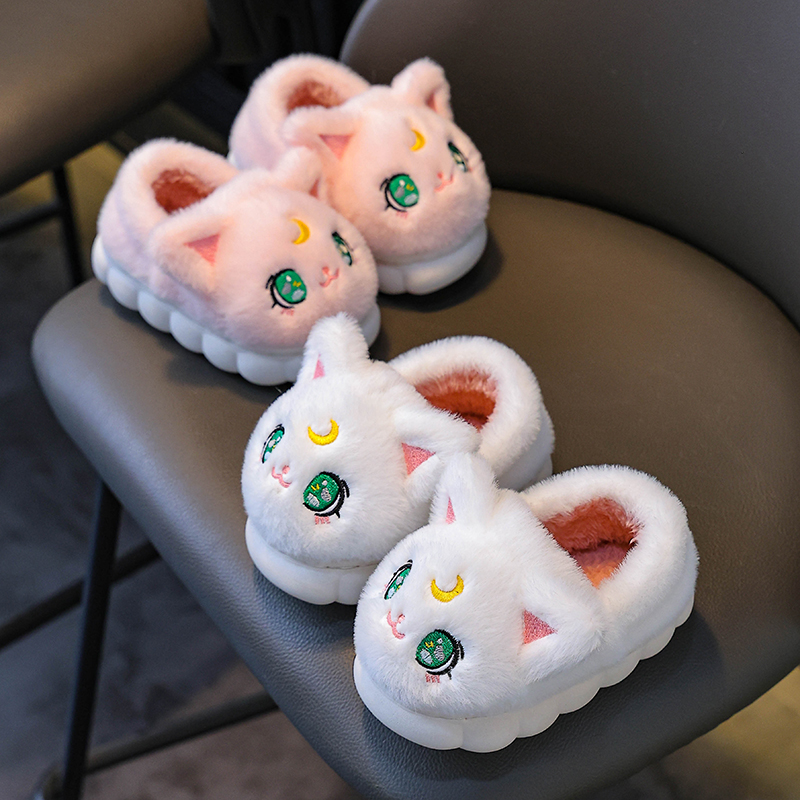 男童皮面防水小孩居家室内女童宝宝加绒保暖棉拖鞋 儿童棉鞋 秋冬季