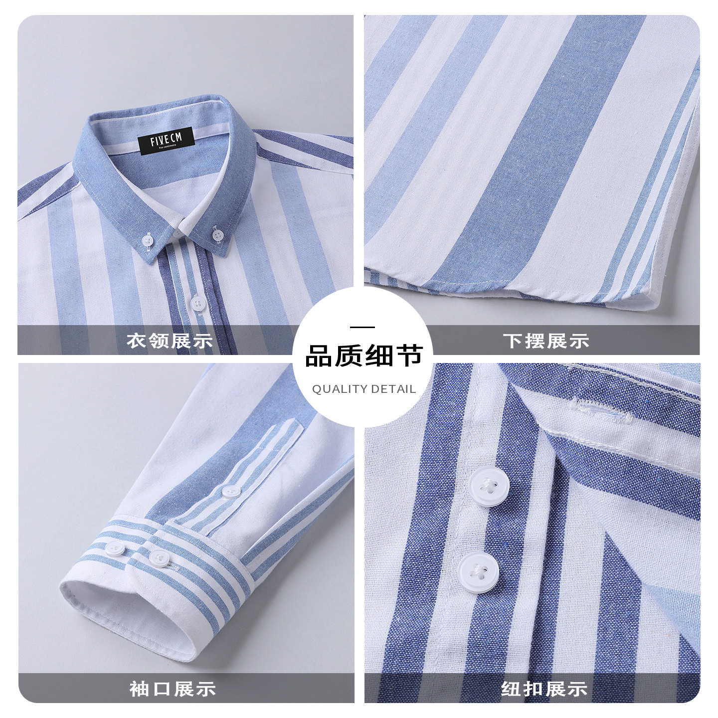 5cm 美式 FIVECM痞帅条纹拼色长袖 男2025秋季 潮牌休闲衬衣 衬衫