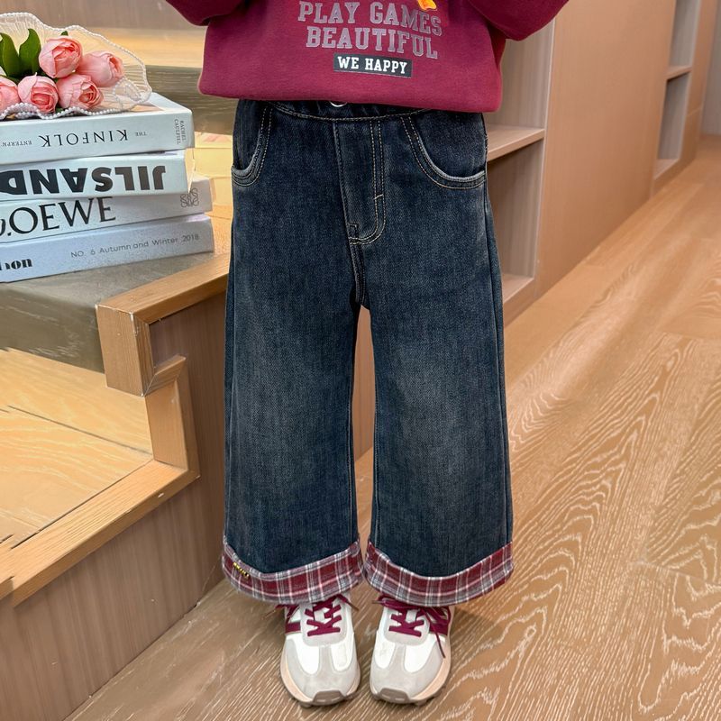 儿童加绒大童阔腿裤 2025新款 秋冬款 裤 女童牛仔裤 子女孩直筒裤 秋装