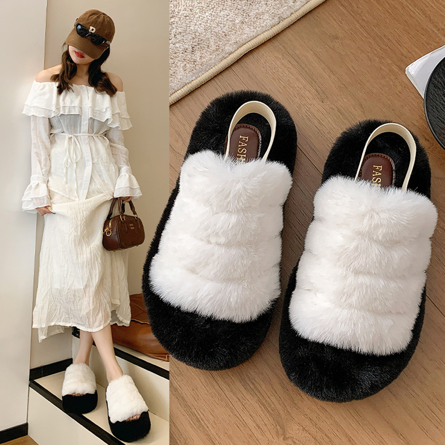 ins潮鞋 韩版 秋冬季 厚底棉拖鞋 潮 毛毛拖鞋 子春夏季 女外穿2025新款