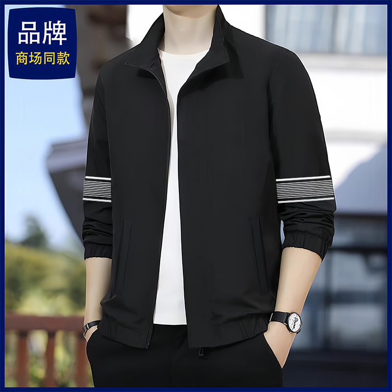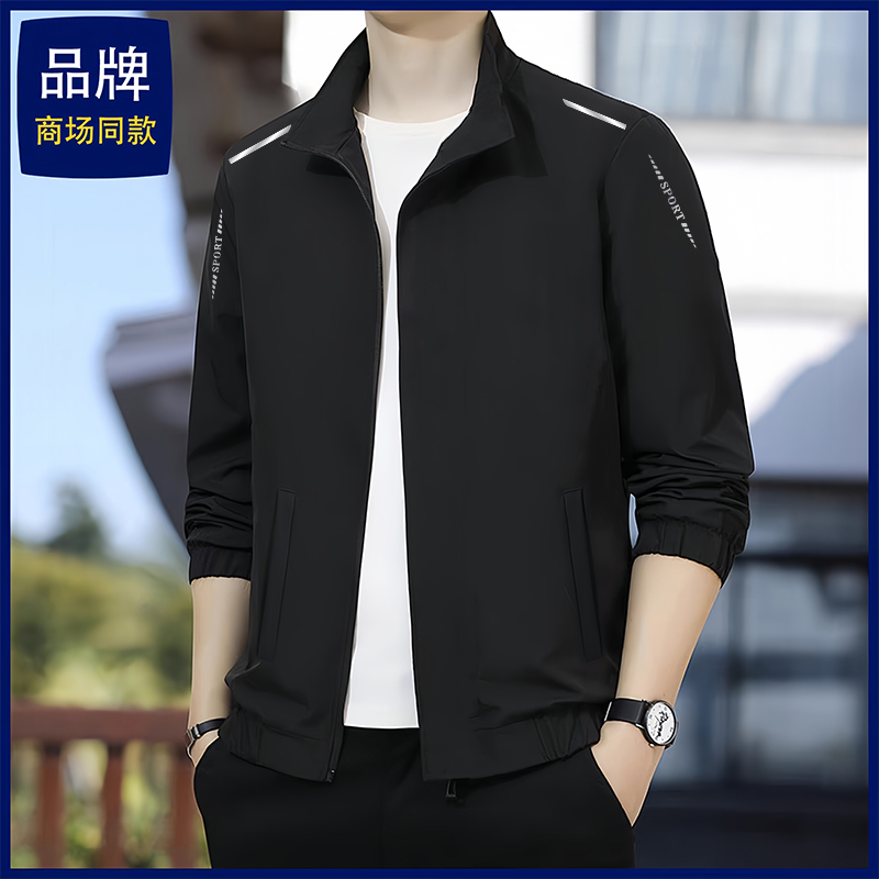 宽松休闲夹克上衣服 拉链开衫 回力外套男春秋新款 加绒连帽卫衣男款
