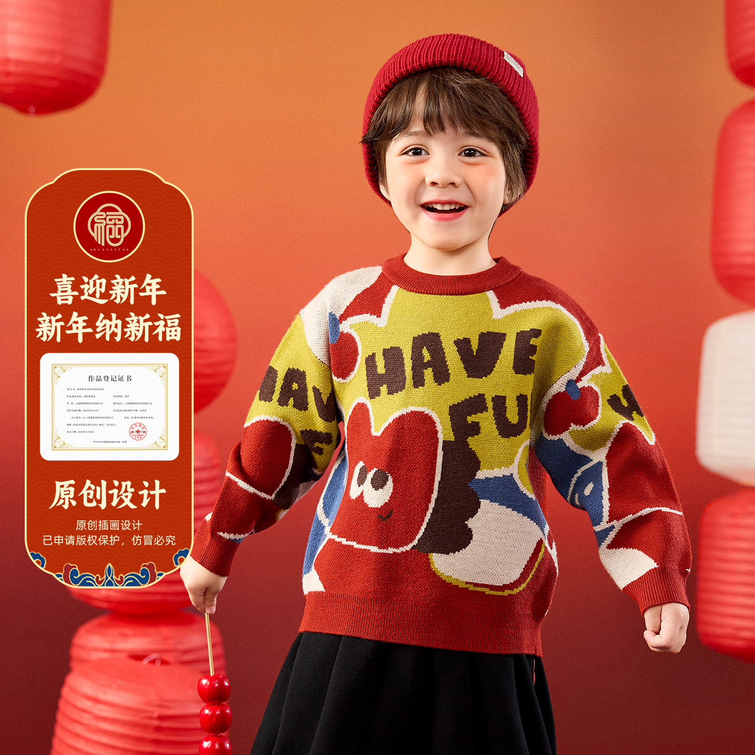 国风年装 毛衣男童女童圆领针织衫 上新 新款 童装 嘟嘟家儿童冬季