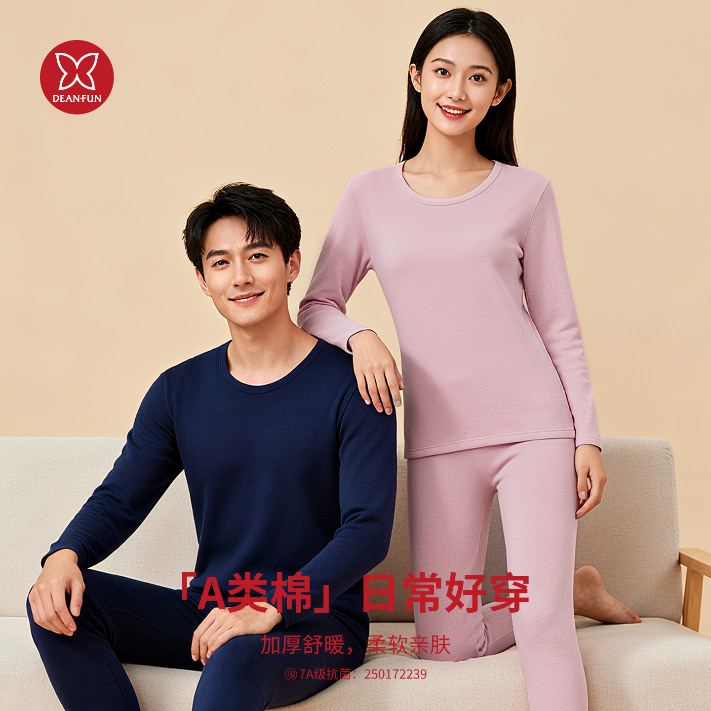 套装 女款 打底贴身内搭秋衣秋裤 蝶安芬加厚纯棉保暖内衣男抗菌大码