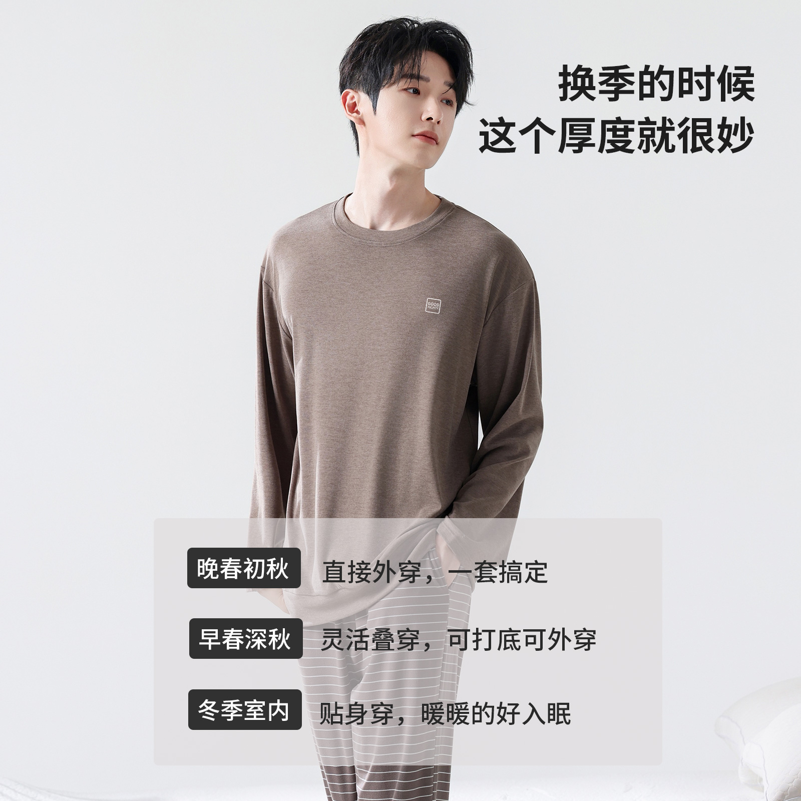 秋季 纯棉长袖 套装 睡衣男士 薄款 春秋款 秋冬季 家乐芬男款 家居服男式