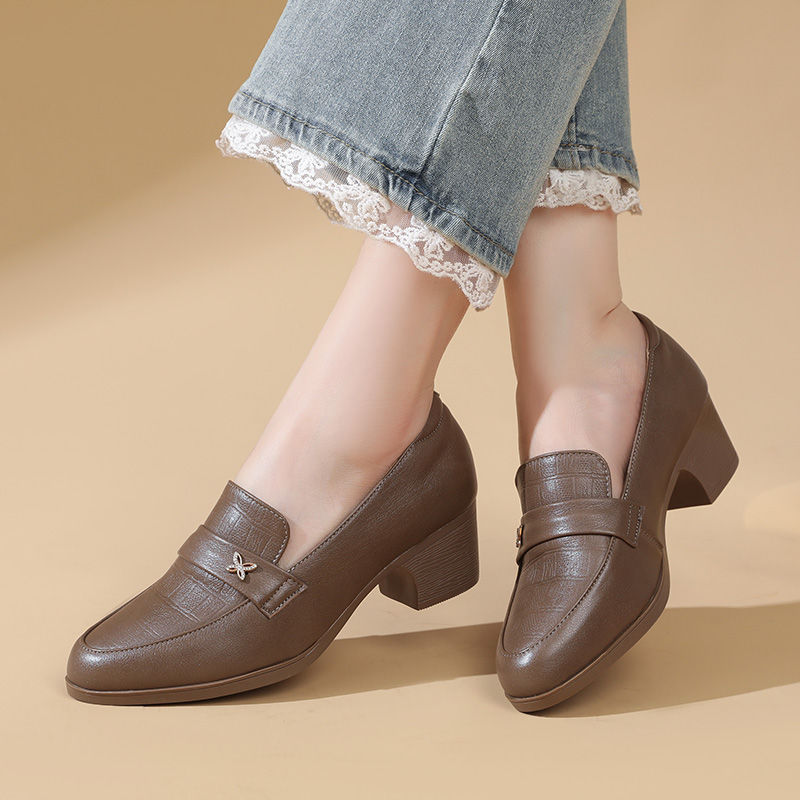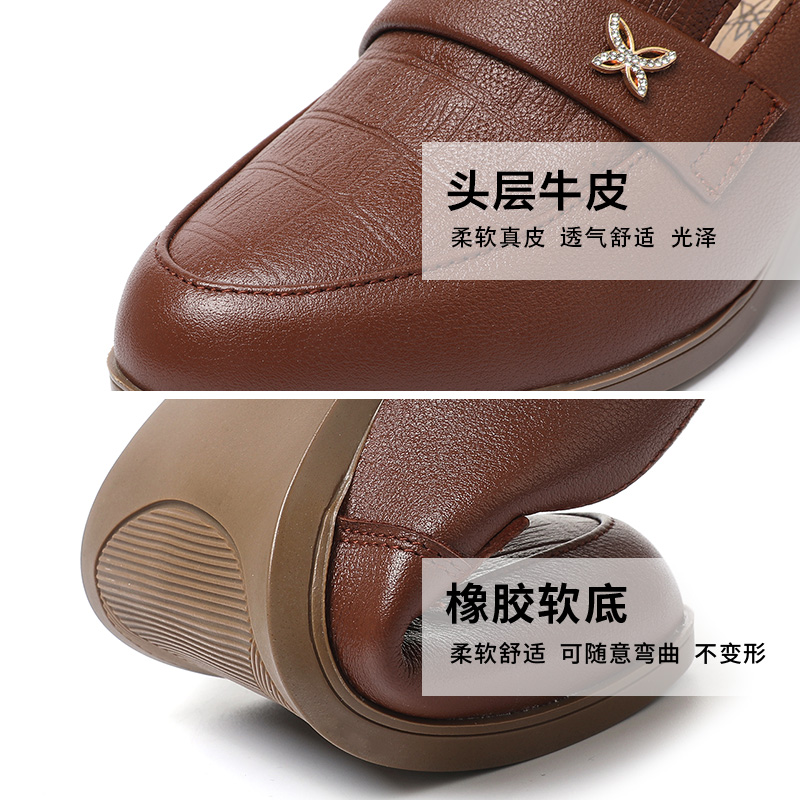 仙女风瓢鞋 秋季 浅口百搭中跟奶奶鞋 大码 真皮单鞋 女鞋 粗跟2025新款