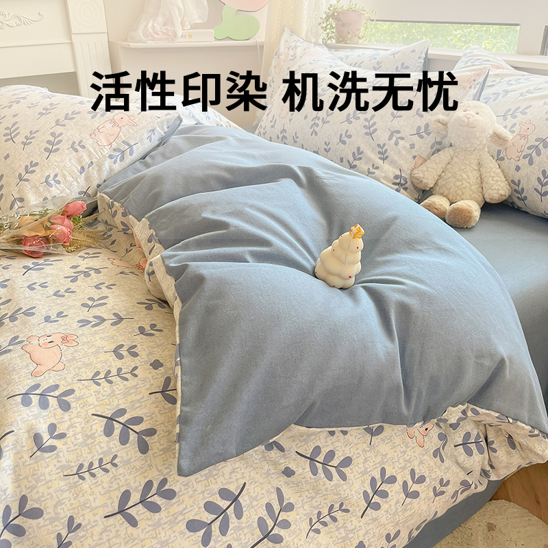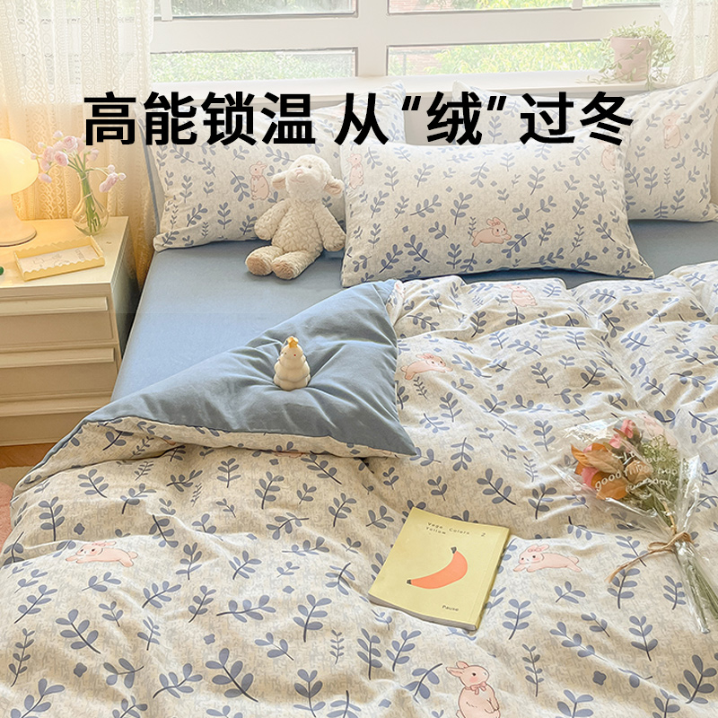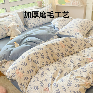 无印良品全棉床单学生宿舍纯棉卡通儿童被套秋冬三件套床上用品