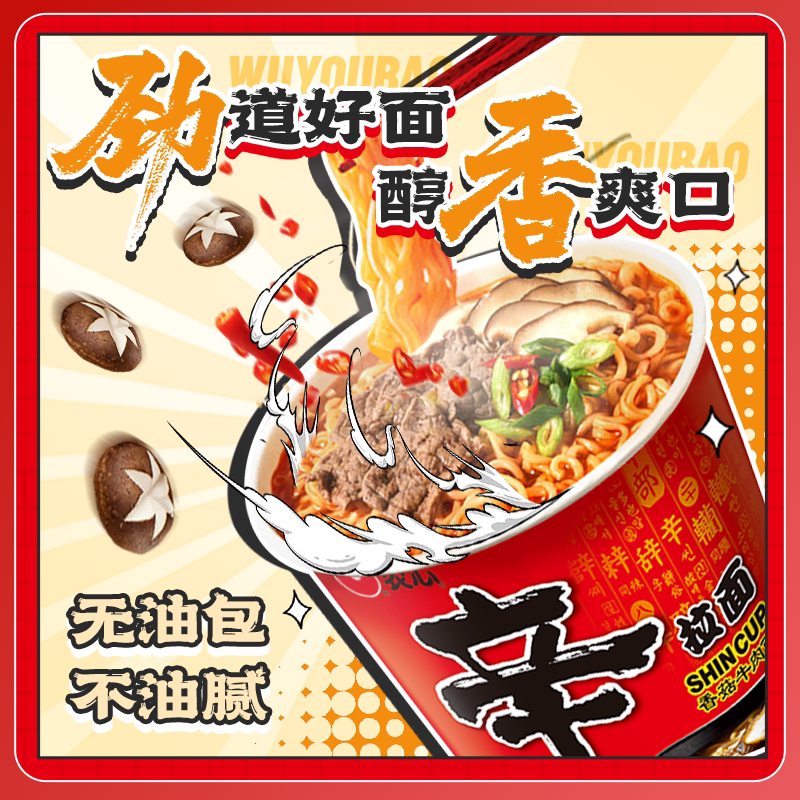 食合记火鸡面速食方便面桶装 冲泡泡铁棍山药拉面麻辣拌面火鸡面皮