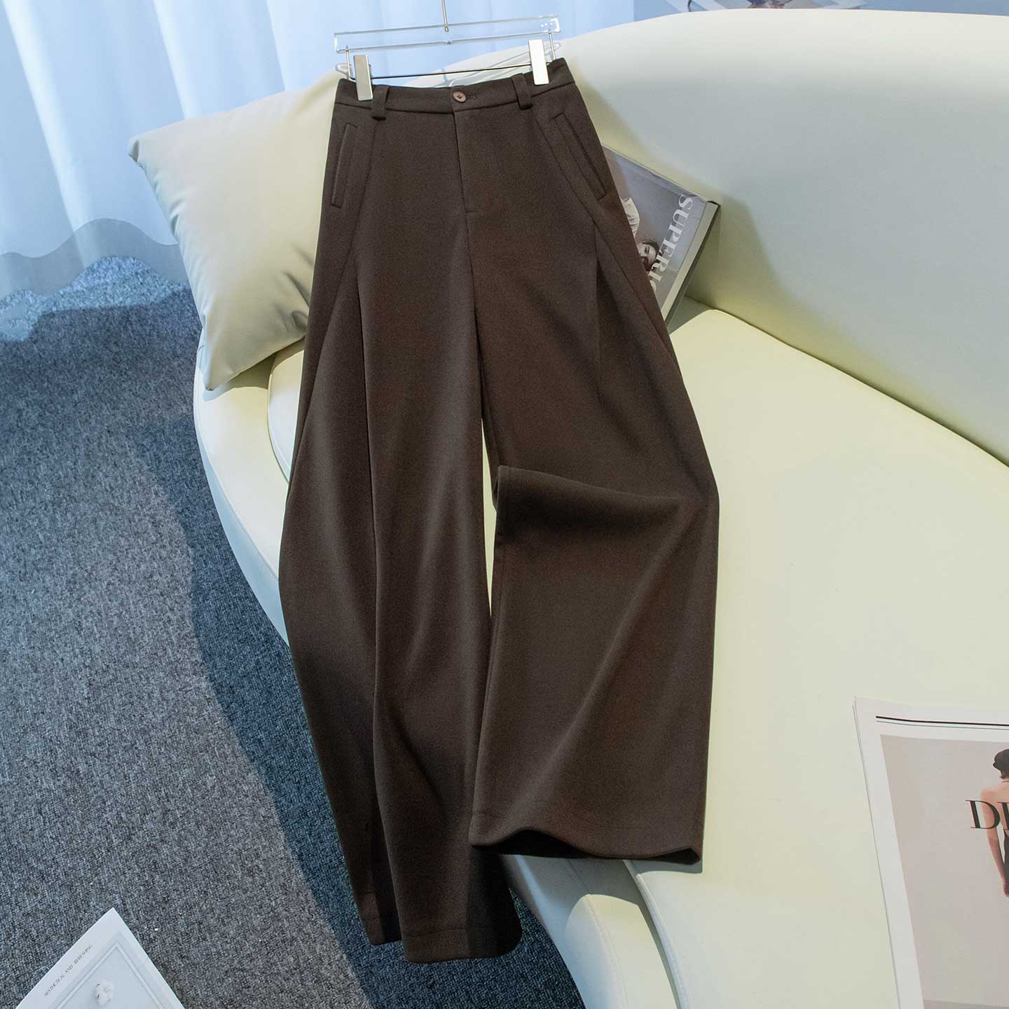 直筒裤 宽松显瘦垂坠感百搭休闲裤 女2025秋冬新款 乌木棕弯刀阔腿裤