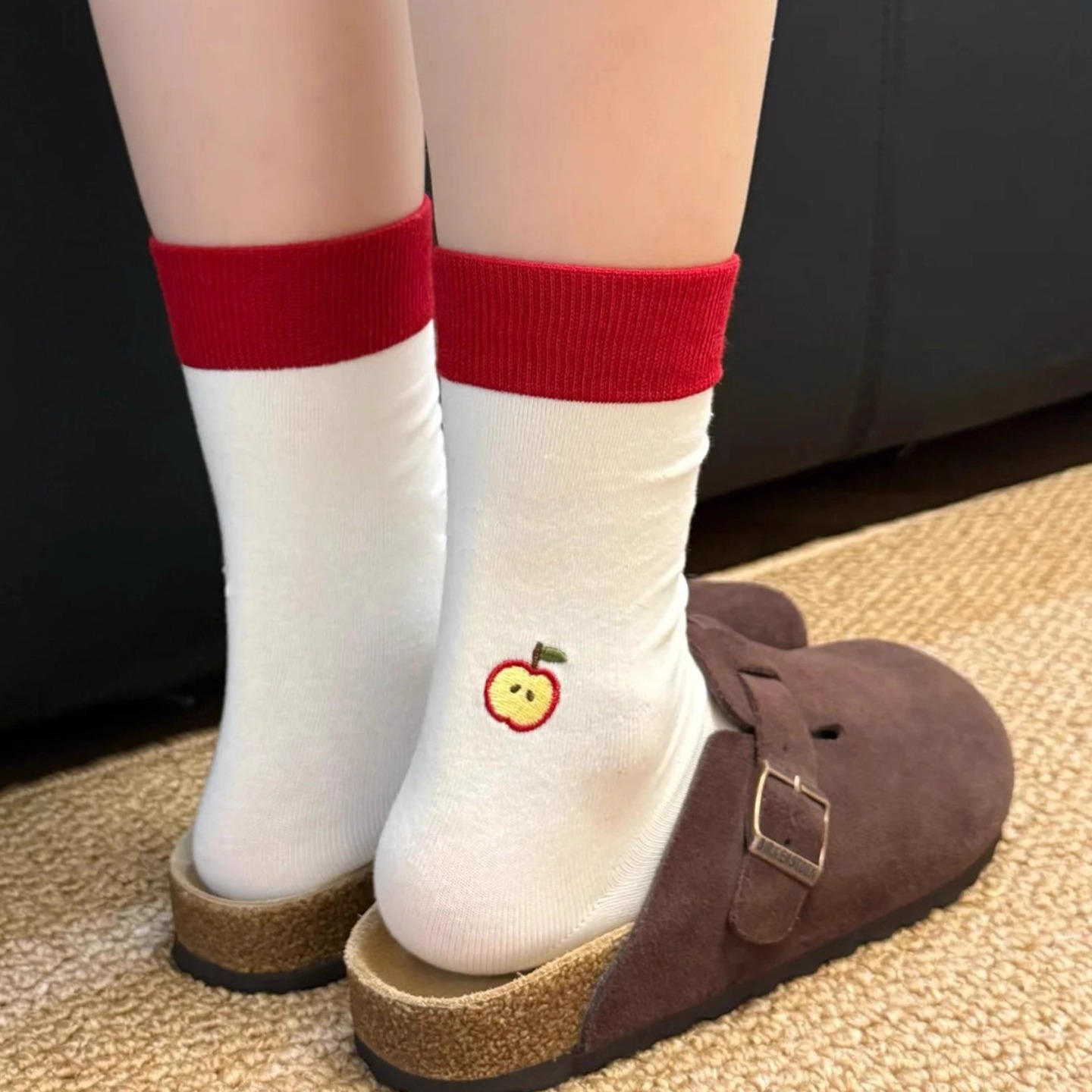 纯棉中筒棕咖色堆堆袜配勃肯鞋 2025新款 长袜 秋冬季 木耳边袜子女款