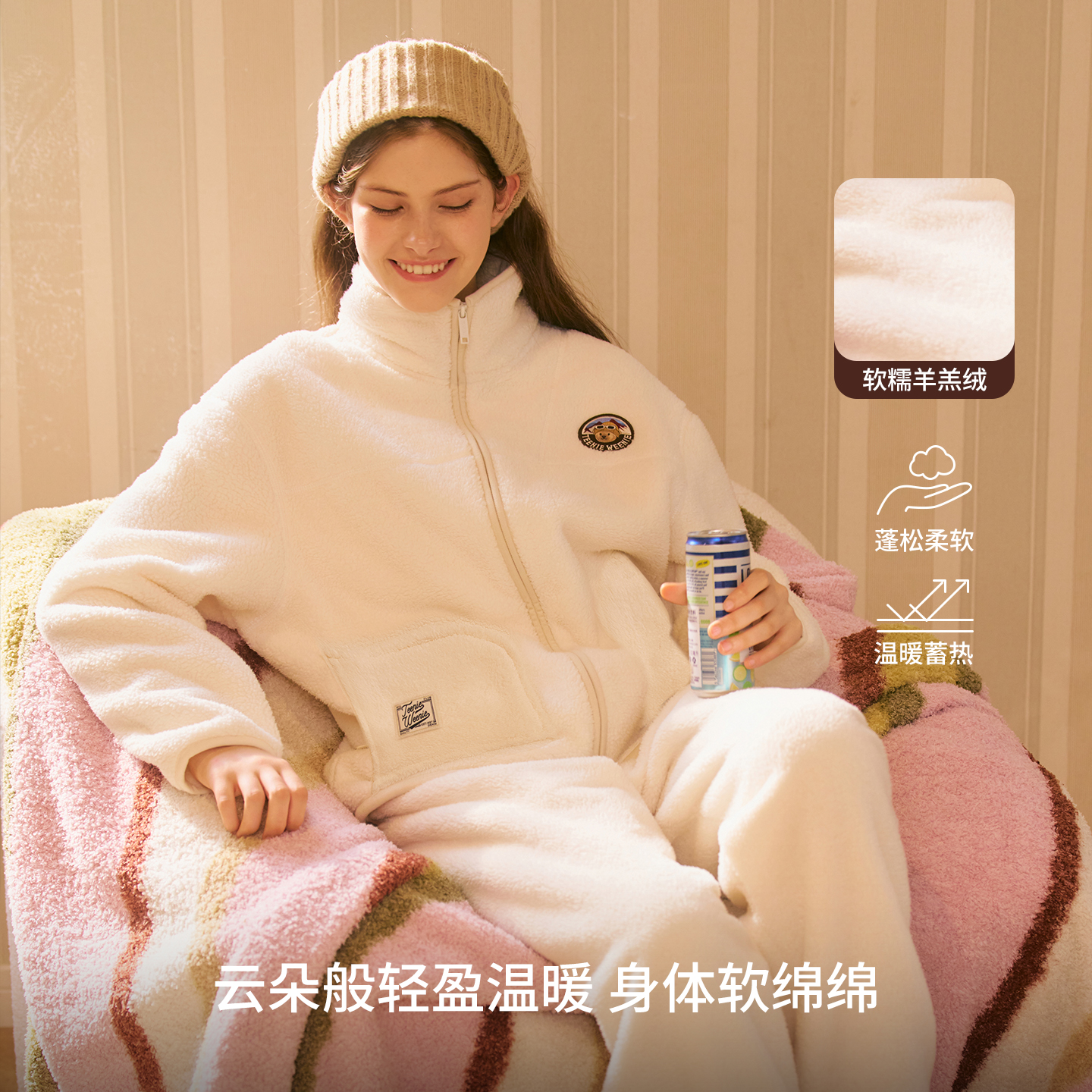 维密宅度假系列奶舒绒睡衣轻柔抗静电保暖家居服套装 女可外穿